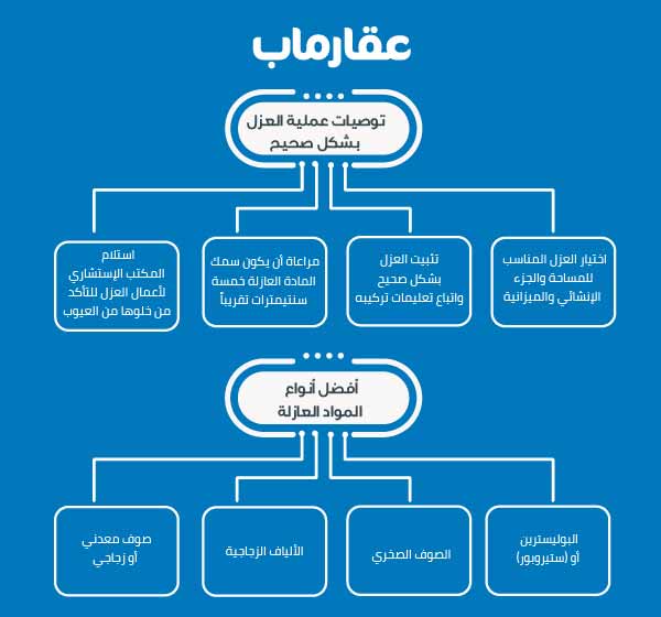 - اختيار العزل المناسب للمساحة والجزء الإنشائي والميزانية
