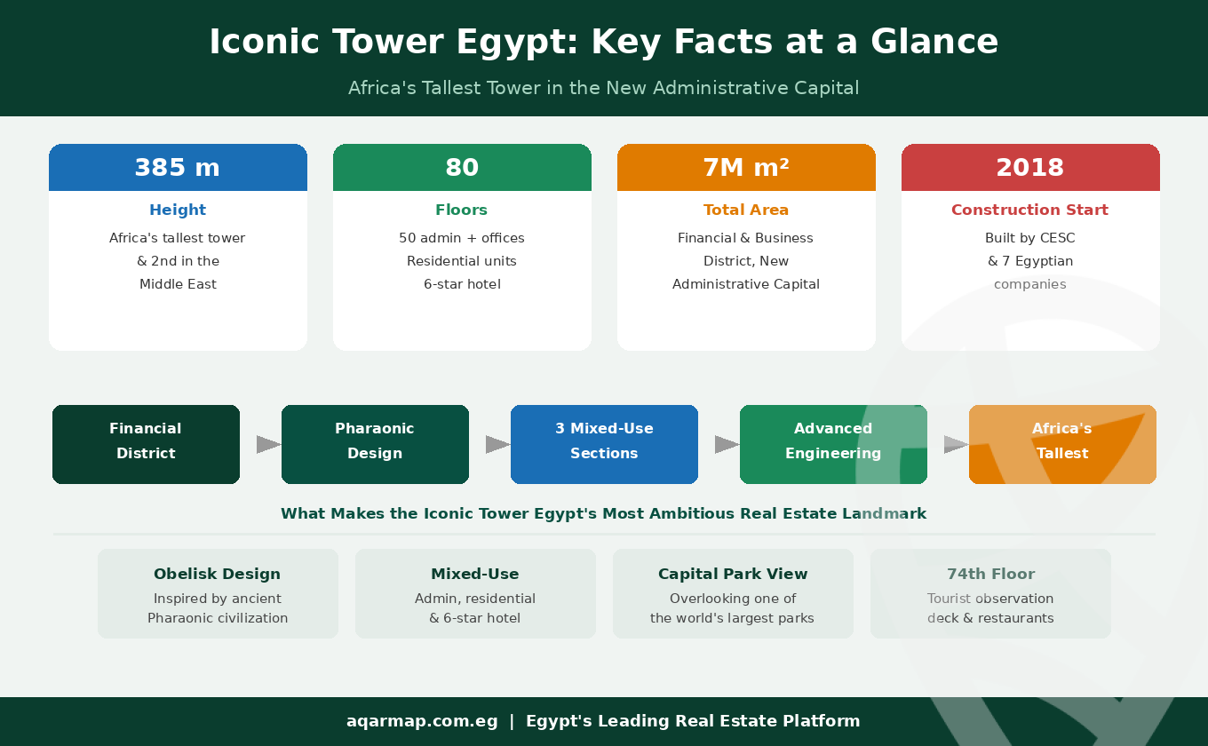 This guide covers everything you need to know about Iconic Tower Egypt — from its record-breaking design and prime location to its mixed-use facilities, advanced construction technology, and investment potential.