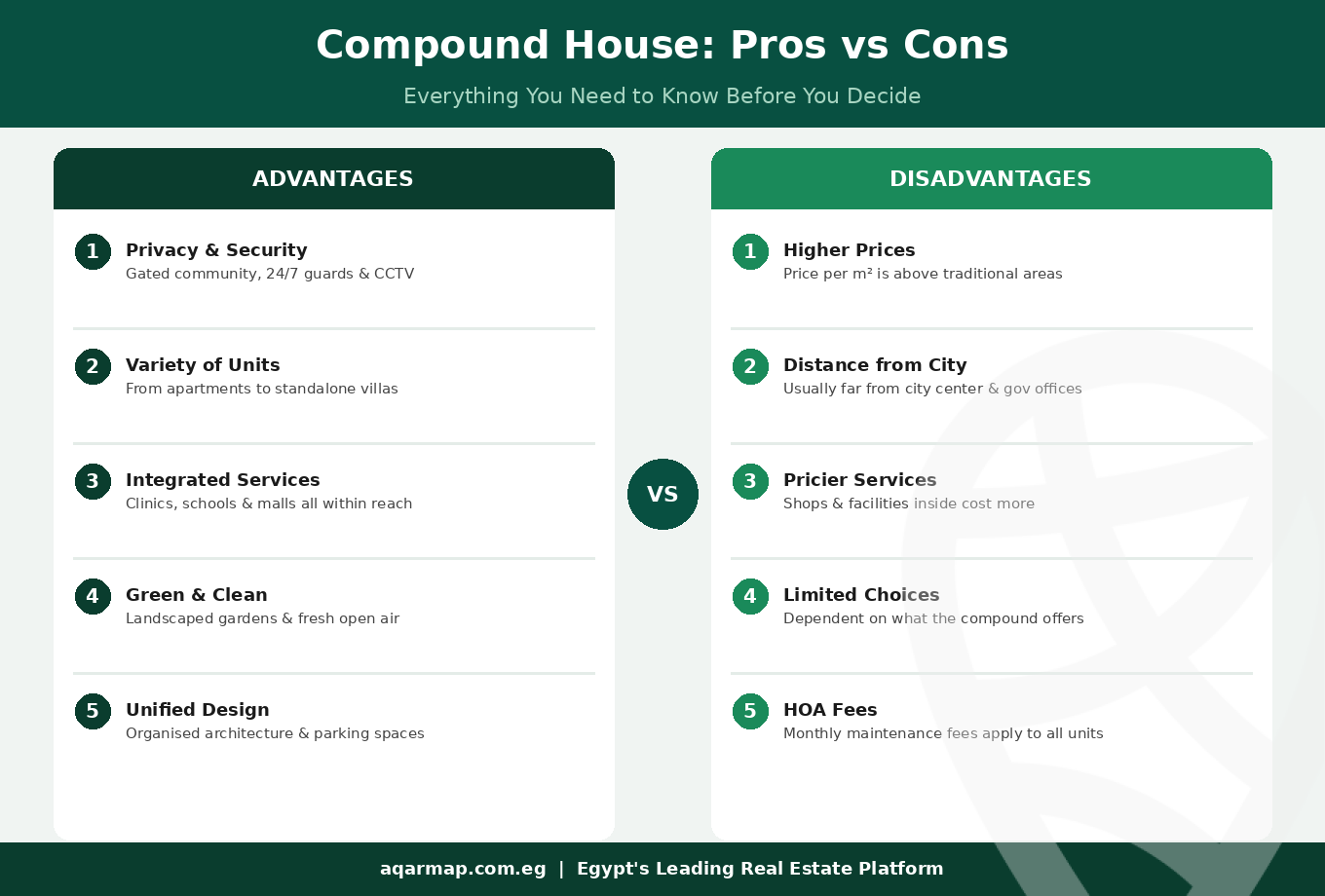 But is living in a compound house in Egypt the right choice for you? In this guide, we break down the full compound house meaning, the types of units available, and all the advantages and disadvantages to help you make an informed decision.