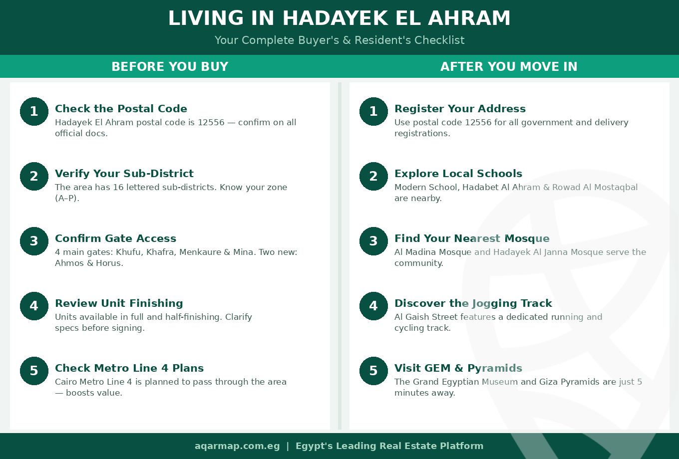 For residents and visitors alike, a key practical detail is the Hadayek al Ahram postal code: 12556. This is the official Egypt Post zip code for the Hadayek Al Ahram and El Ahram area in Giza, and it is required for all official correspondence, deliveries, and government registrations for residents of the district.